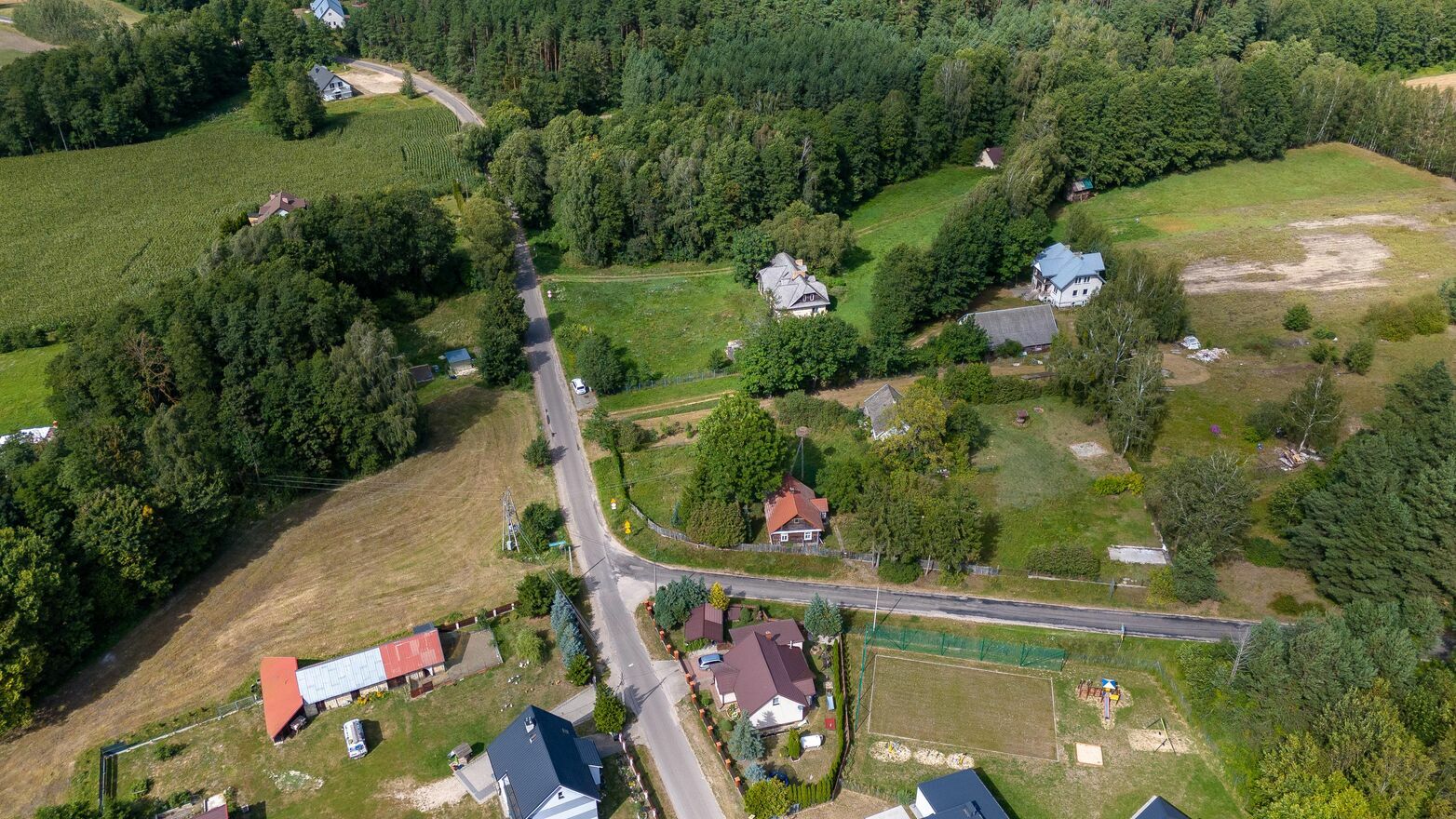 Nieruchomość narożna przylegająca z dwóch stron do asfaltowej drogi powiatowej, w której rozprowadzone są sieci infrastruktury technicznej: elektroenergetyczna, wodociągowa, kanalizacji sanitarnej i telekomunikacyjna.